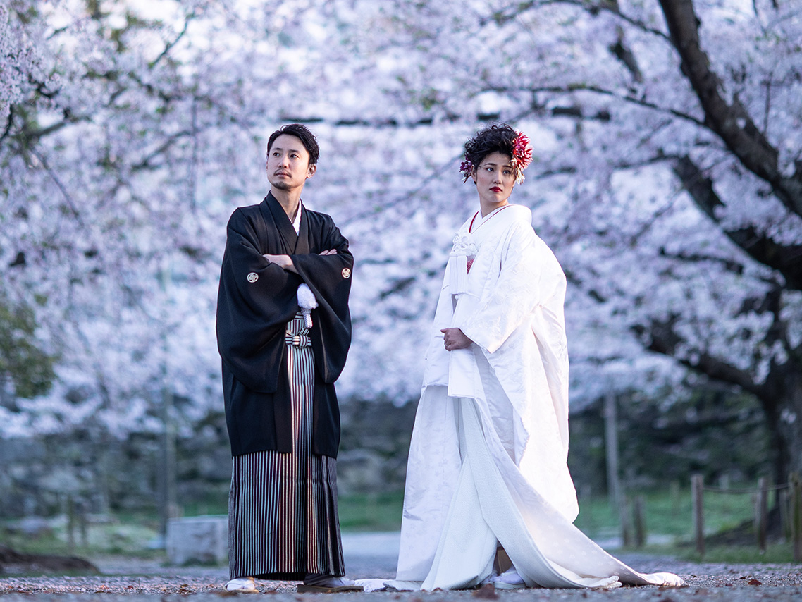 ロケーション撮影(洋装) ※春は桜、秋は紅葉、年中通して美しい⽇本庭園での撮影はプランに含みます。