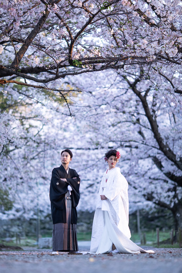 ロケーション撮影(洋装) ※春は桜、秋は紅葉、年中通して美しい⽇本庭園での撮影はプランに含みます。